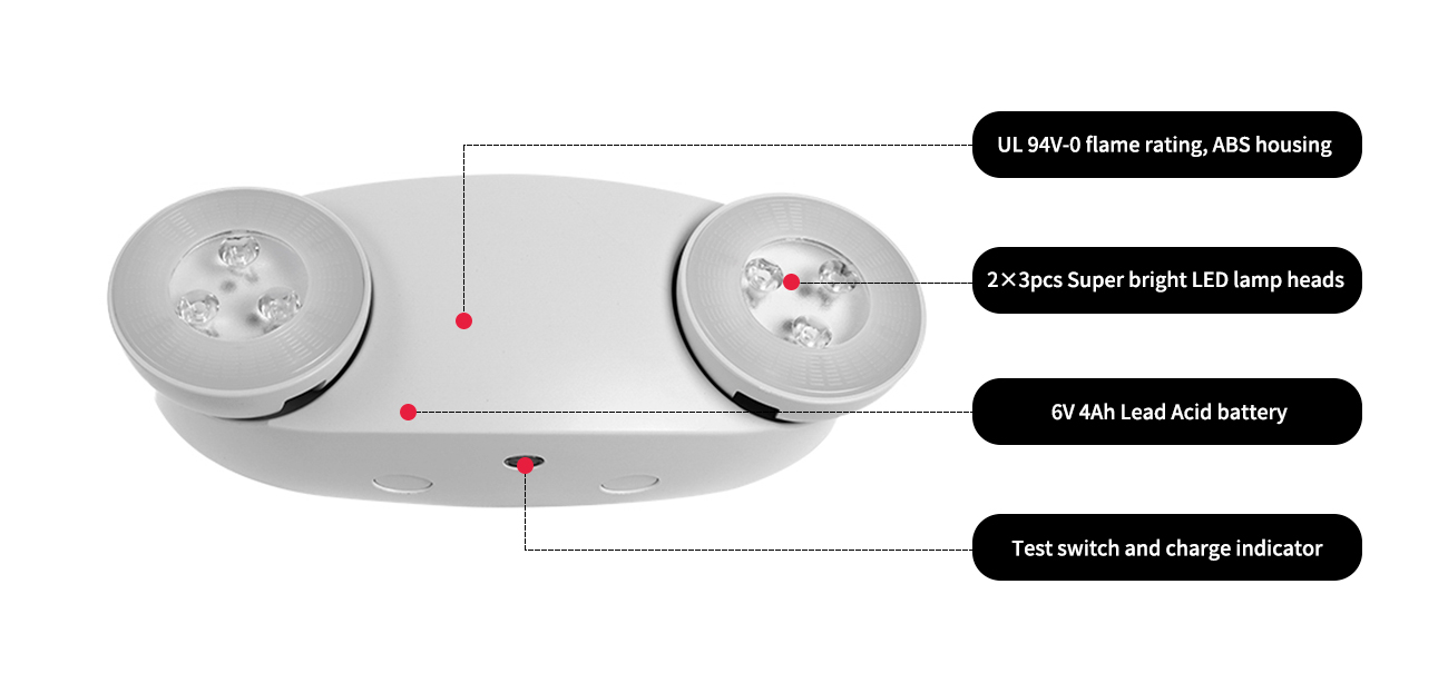 Otthon / Termék / Vészvilágítás / Kettős fejű vészhelyzeti lámpa / JLEU6 UL/CUL 600 lm nagy teljesítményű kettős fej vészhelyzet
