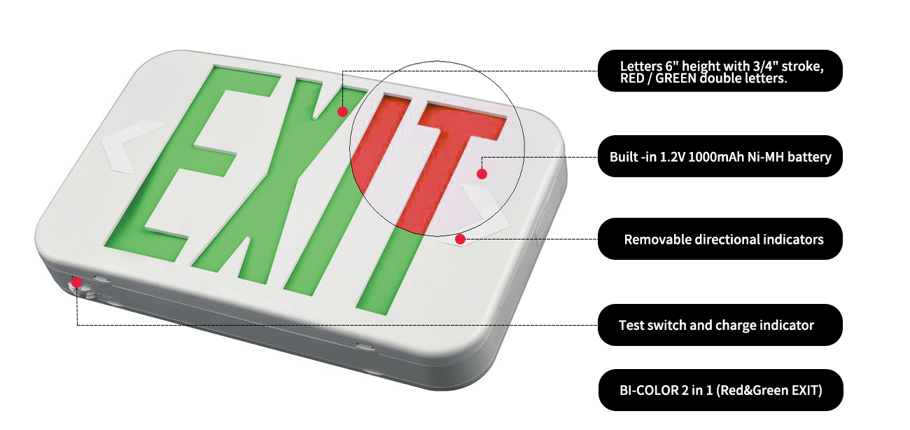 Egy egyszerű, hatékony és biztonságos UL felsorolt kilépési jel 6 "piros vagy zöld LED-es betűkkel. Pénzt takaríthat meg ennek a 2-a-1-ben.