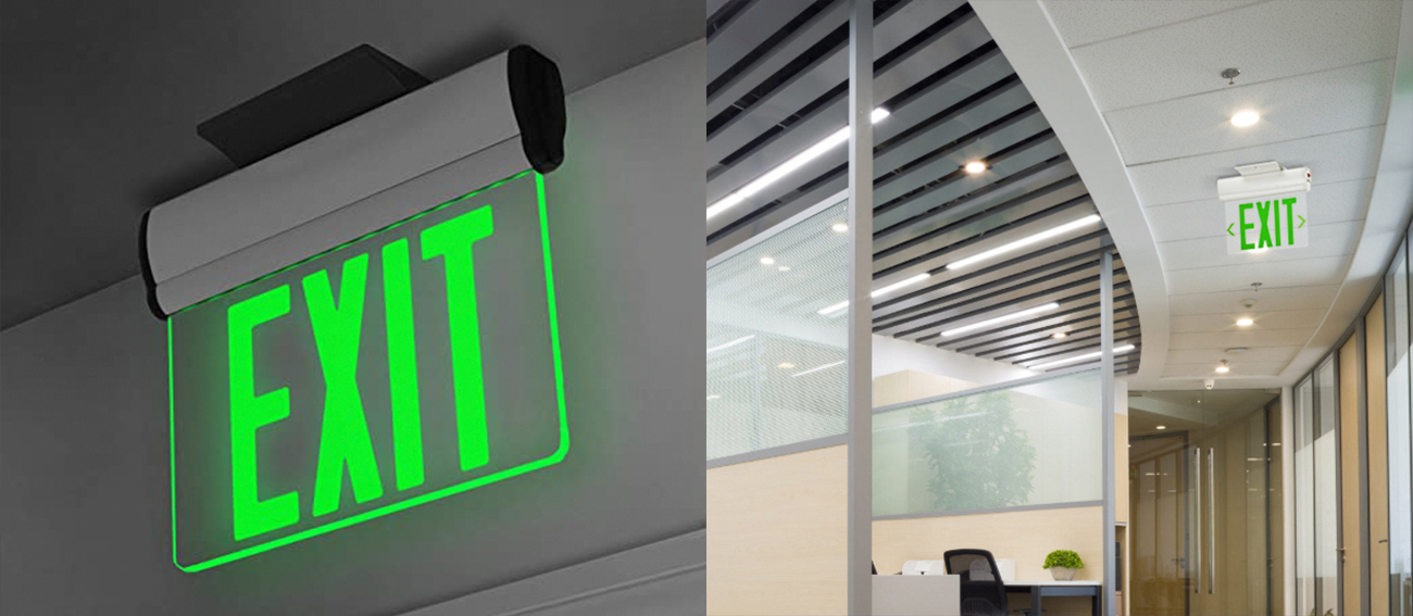 *Megvilágítás - Ez a Edge Lit Exit Sign sorozat hosszú élettartamú LED megvilágítást biztosít. Az egységet zöld, nagy teljesítményű LED -es táblával állítják fel.  Az energiafogyasztást kevesebb, mint 4 watt értékeljük az AC egyetlen modellegységének. Az akkumulátor tartalék egységek energiafogyasztása kevesebb, mint 1 watt értékű.