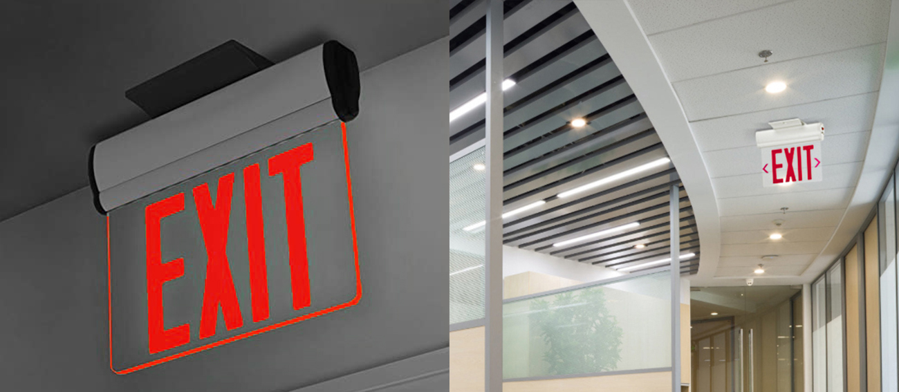 *Megvilágítás - Ez a Edge Lit Exit Sign sorozat hosszú élettartamú LED megvilágítást biztosít. Az egységet piros, nagy kimeneti LED -es táblával készítik.  Az energiafogyasztást kevesebb, mint 4 watt értékeljük az AC egyetlen modellegységének. Az akkumulátor tartalék egységek energiafogyasztása kevesebb, mint 1 watt értékű.