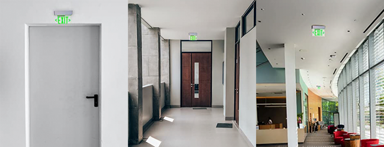 *Megvilágítás - Ez a Edge Lit Exit Sign sorozat hosszú élettartamú LED megvilágítást biztosít. Az egységet piros, nagy kimeneti LED -es táblával készítik.  Az energiafogyasztást az AC egyetlen modellegységének kevesebb, mint 3,5 watt értéke. Az akkumulátor tartalék egységek energiafogyasztása kevesebb, mint 1 watt értékű.