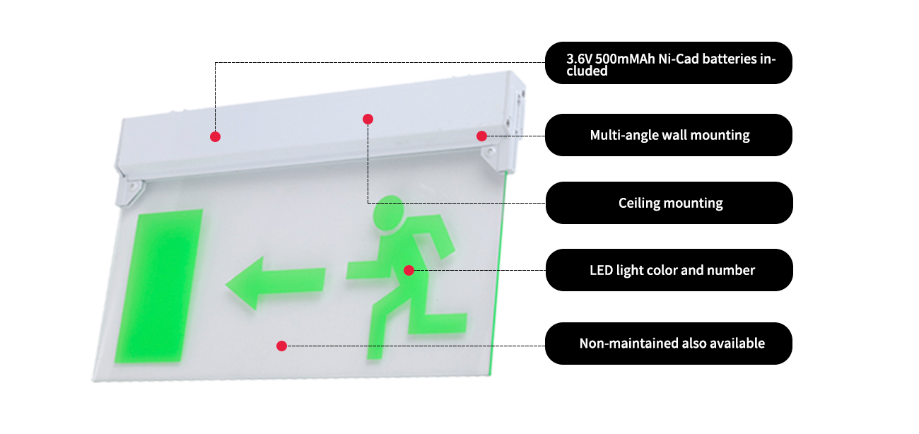 Ez egy olyan vészhelyzeti kijárat -jelzőtáblák, amelyeket műszaki megoldásokkal terveztek és felszereltek, amelyek sokféle alkalmazásra alkalmassá teszik. A kilépési jelzőcímkék megválasztása a választékot a vészvilágítási követelményekhez több helyen, például irodákban, éttermekben, szállodákban, kórházakban és általános kereskedelmi alkalmazásokban alkalmazza.